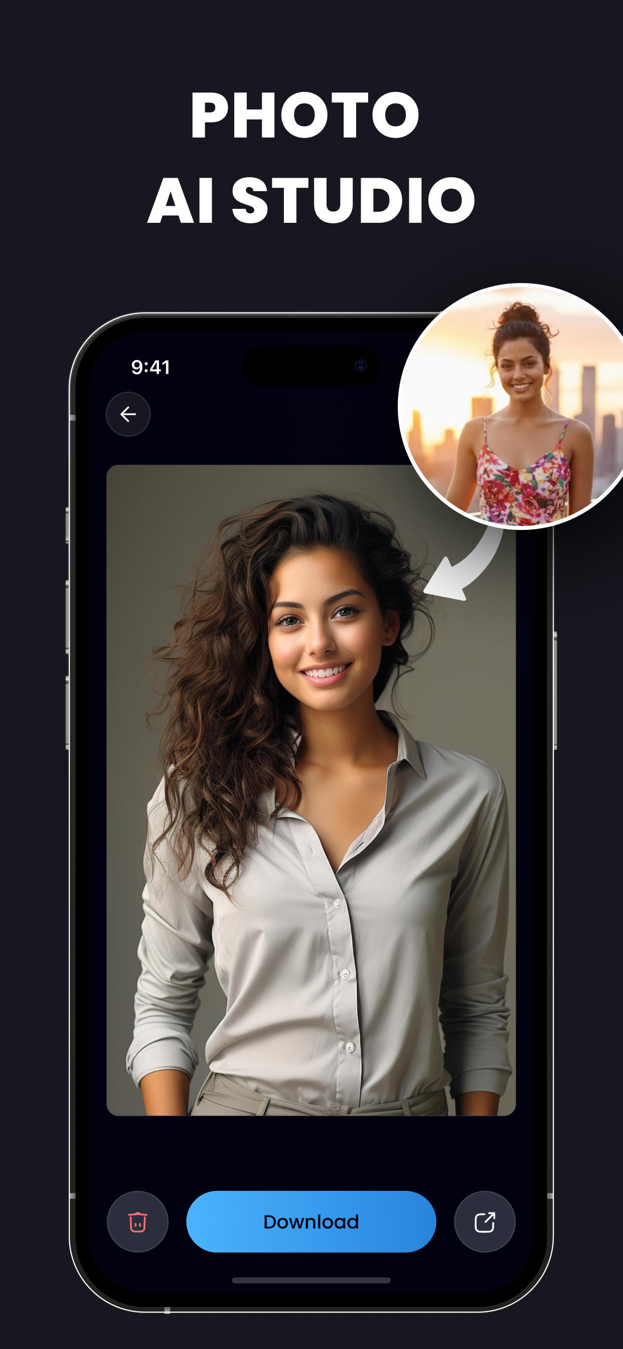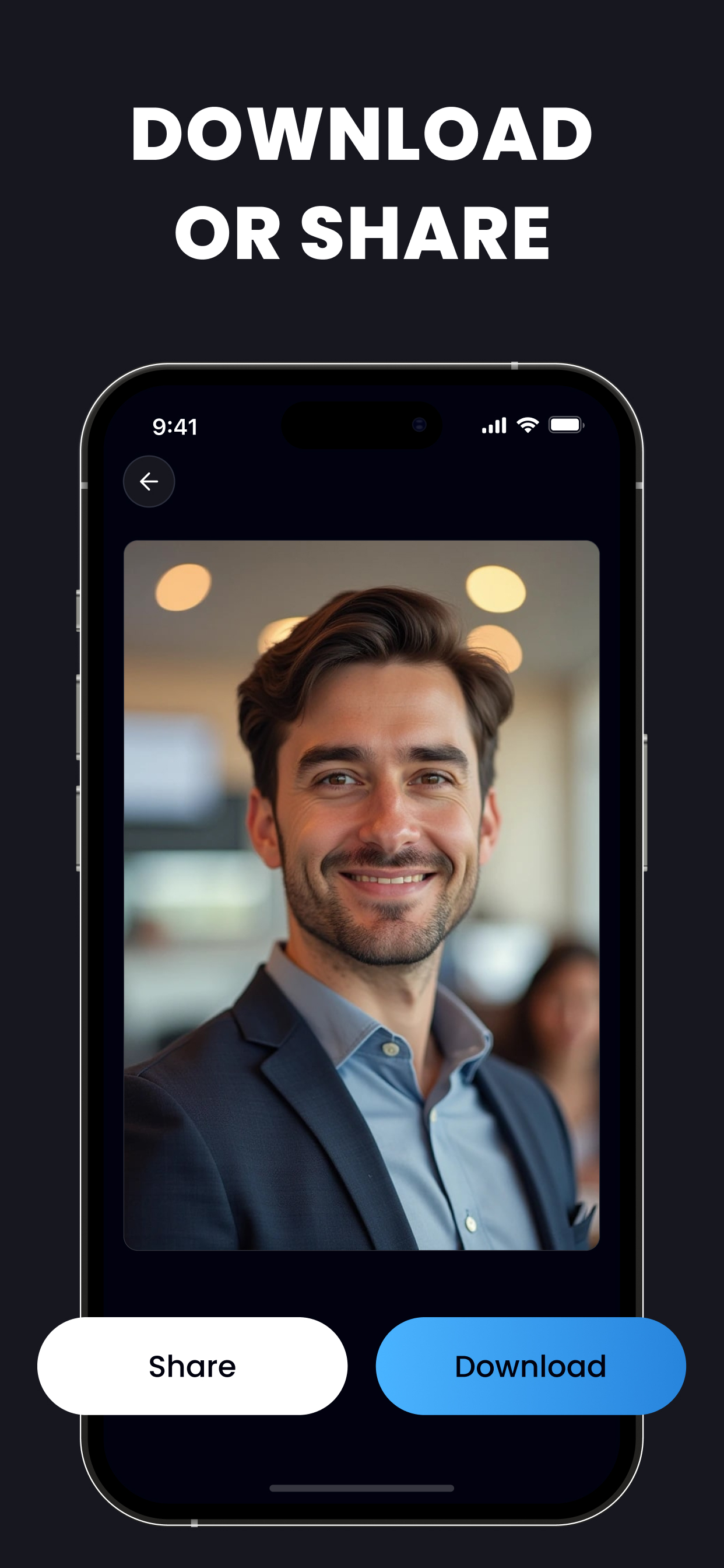 → Download & Share: Instantly download or share your AI-generated portraits anywhere.