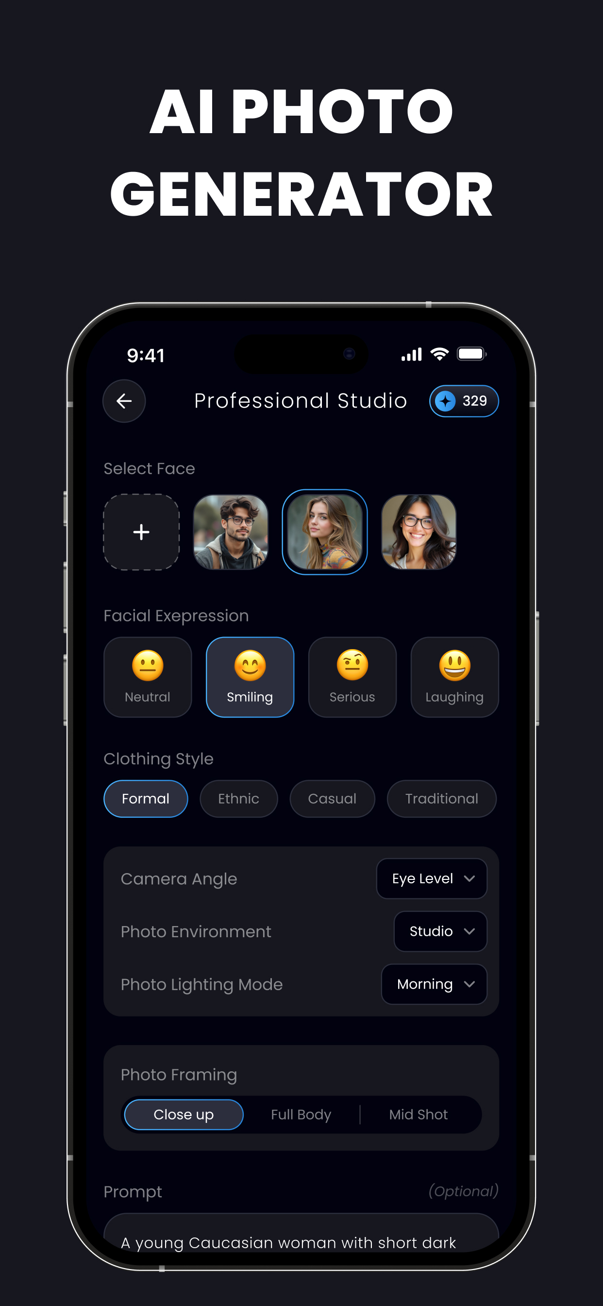 → Professional AI Studio: A guided photo generator that feels like a real studio. Select appropriate options and get a natural, realistic headshot.